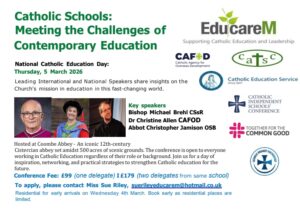 The conference is open to everyone working in Catholic Schools, leadership team, teachers, governors, support staff and so I would be grateful if you could circulate this to members of your team that you feel would benefit from being part of the conversation, or to colleagues within your network who are not yet part of the EducareM network.